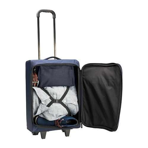 IKEA Handgepäcktrolley ‚Üpptacka‘ Kabinenkoffer mit nur 1,9kg Gewicht – mit Rollen – zusammenfaltbar – Teleskopgriff – Stahlrahmen – DUNKELBLAU-WEISS