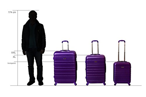 Handgepäck Hartschalen Koffer TSA Zahlenschloss Außenmaße (mit Rollen) ca. 55 x 40 x 20 cm Innenmaße ca. 47 x 38 x 18 cm = ca. 32 Liter Volumen Ausziehgriff (ca. 16 cm breit) mit solider Aluminiumstange um ca. 50 cm ausziehbar 4 leichtgängige Gummi Rollen maximale Mobilität 360° drehbare Rollen Gesamthöhe des Koffers mit ausgezogenem Ausziehgriff ca. 103 cm Material: ABS Leergewicht: ca. 2,8 KG Extrem stabil und sehr leicht Sehr Robuste Bauweise praktische Inneneinteilung Reißverschluss mit 2 Zippern, die am TSA Zahlenschloss abschließbar sind Stabiler Soft Touch Tragegriff oben 4 um 360° frei in alle Fahrtrichtungen drehbare Gummirollen. Dadurch macht der Koffer jede Änderung der Fahrtrichtung sofort mit, ohne dass Sie erst den ganzen Koffer in Fahrtrichtung ausrichten müssen, wie das bei starr an den Koffer montierten Rollen der Fall wäre. Textil innen Futter aus Polyester, mit Schaumstoff ausgepolstert Im Innenraum: Kreuzgurt zum Fixieren des Inhalts und Trennwand mit Taschen. Dadurch ist ein schnelles, ordentliches und beidseitiges Ein- und Auspacken möglich. Extra Gepolsterte Tasche auf der Trennwand für Notebooks Handy s und Tablet PC s 2 Hauptfächer für beidseitiges Packen Neuware Hochwertige Materialien für den Europäischen markt gefertigt.