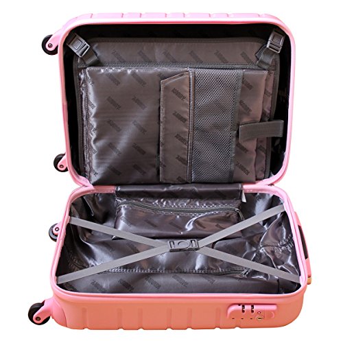 Handgepäck Hartschalen Koffer TSA Zahlenschloss Außenmaße (mit Rollen) ca. 55 x 40 x 20 cm Innenmaße ca. 47 x 38 x 18 cm = ca. 32 Liter Volumen Ausziehgriff (ca. 16 cm breit) mit solider Aluminiumstange um ca. 50 cm ausziehbar 4 leichtgängige Gummi Rollen maximale Mobilität 360° drehbare Rollen Gesamthöhe des Koffers mit ausgezogenem Ausziehgriff ca. 103 cm Material: ABS Leergewicht: ca. 2,8 KG Extrem stabil und sehr leicht Sehr Robuste Bauweise praktische Inneneinteilung Reißverschluss mit 2 Zippern, die am TSA Zahlenschloss abschließbar sind Stabiler Soft Touch Tragegriff oben 4 um 360° frei in alle Fahrtrichtungen drehbare Gummirollen. Dadurch macht der Koffer jede Änderung der Fahrtrichtung sofort mit, ohne dass Sie erst den ganzen Koffer in Fahrtrichtung ausrichten müssen, wie das bei starr an den Koffer montierten Rollen der Fall wäre. Textil innen Futter aus Polyester, mit Schaumstoff ausgepolstert Im Innenraum: Kreuzgurt zum Fixieren des Inhalts und Trennwand mit Taschen. Dadurch ist ein schnelles, ordentliches und beidseitiges Ein- und Auspacken möglich. Extra Gepolsterte Tasche auf der Trennwand für Notebooks Handy s und Tablet PC s 2 Hauptfächer für beidseitiges Packen Neuware Hochwertige Materialien für den Europäischen markt gefertigt.