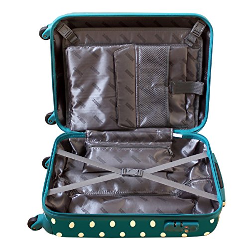 Handgepäck Hartschalen Koffer Zebra TSA Zahlenschloss Außenmaße (mit Rollen) 55 x 40 x 20 cm Innenmaße ca. 47 x 38 x 18 cm = ca. 32 Liter Volumen Ausziehgriff (ca. 16 cm breit) mit solider Aluminiumstange um ca. 50 cm ausziehbar 4 leichtgängige Rollen maximale Mobilität 360° drehbare Rollen Gesamthöhe des Koffers mit ausgezogenem Ausziehgriff ca. 105 cm Material: PC Leergewicht: ca. 2,8 KG Extrem stabil und sehr leicht Sehr Robuste Bauweise praktische Inneneinteilung Reißverschluss mit 2 Zippern, die am TSA Zahlenschloss abschließbar sind Stabiler Soft Touch Tragegriff oben 4 um 360° frei in alle Fahrtrichtungen drehbare Gummirollen. Dadurch macht der Koffer jede Änderung der Fahrtrichtung sofort mit, ohne dass Sie erst den ganzen Koffer in Fahrtrichtung ausrichten müssen, wie das bei starr an den Koffer montierten Rollen der Fall wäre. Textil innen Futter aus Polyester, mit Schaumstoff ausgepolstert Im Innenraum: Kreuzgurt zum Fixieren des Inhalts und Trennwand mit Taschen. Dadurch ist ein schnelles, ordentliches und beidseitiges Ein- und Auspacken möglich. Extra Gepolsterte Tasche auf der Trennwand für Notebooks Handy s und Tablet PC s 2 Hauptfächer für beidseitiges Packen Hochwertige Materialien für den Europäischen markt gefertigt.