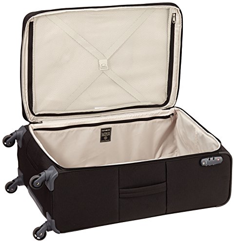 Samsonite All Direxions 4-Rad Trolley 77cm Die Serie „All Direxions“ bietet alle Eigenschaften, die Sie von einem Samsonite Koffer erwarten. Leichtigkeit, ein tolles Design und klassische Farben zu attraktiven Preisen, die in jedes Reise-Budget passen. Außenausstattung: – 1 arretierbares Teleskopgestänge, 2-armig – 4 leichtlaufende Rollen – 1 bequemer Tragegriff – 1 Reißverschluss-Vortasche – erweiterbar für mehr Packvolumen – 1 Steckfach für einfachen Zugriff von Dokumenten – 1 ausziehbares Adressfeldschild – Verschluss: Reißverschluss mit integrierten TSA-Zahlenschloss Innenausstattung: – 1 geräumiges Hauptfach – 1 Reißverschluss-Trennwand in Netzoptik – 2 Kreuzspanngurte – 1 seitliche Reißverschluss-Tasche