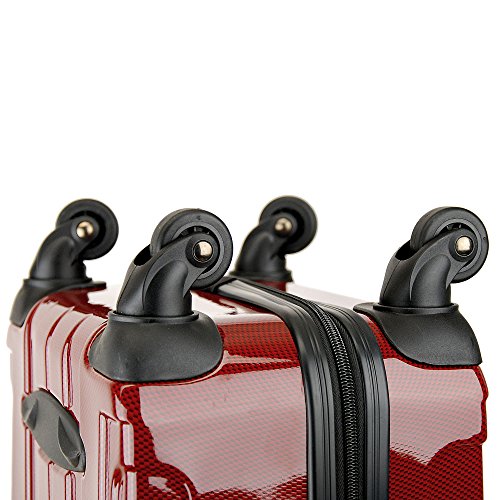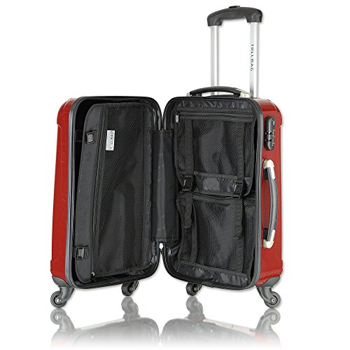 EXCLUSIVER TOLLBAG REISEKOFFER BOARDCASE COMO 50: 30 Liter Fassungsvermoegen Ausziehbarer Haltegriff 4-Rollen-Leichtlauf-Fahrwerk Zahlenkombinationsschloss Beidseitige Packmoeglichkeit 4 extra Standfuesse, 2 Tragegriffe (Oben und an der Seite) Rundum Reißverschluß mit Verschließvorrichtung Trennwaende mit Netztaschen und Spanngurte im Innenraum Sonderzubehoer: – waschbarer Kofferschutzbeutel und Schuhbeutel mit reichlich Stauraum Maße innen (HxBxT): ca. 46 x 32,5 x 17 cm Gewicht: ca. 2,9 kg Volumen: ca. 30 Liter Farbe: carbonrot Material: Polycarbonat/ABS-Mix. Geeignet für Ryanair und Lufthansa als Kabinentrolley